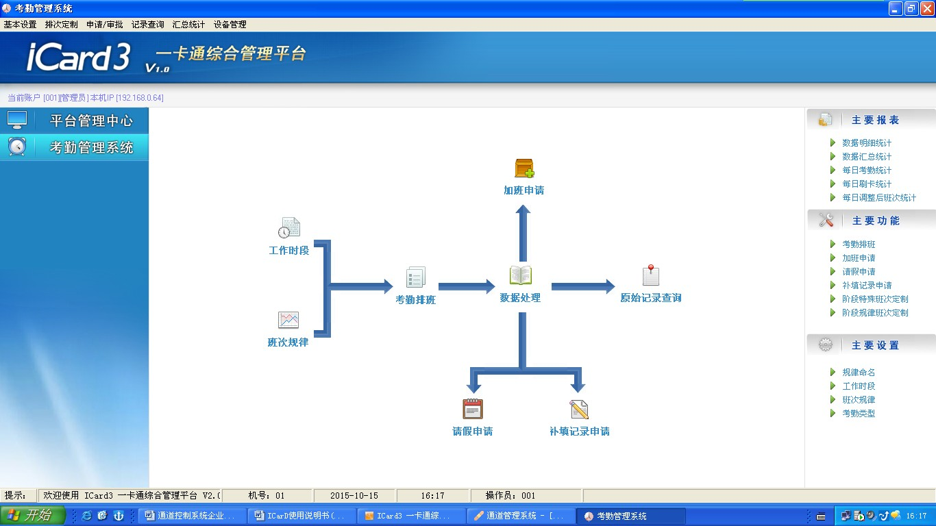 一卡通考勤管理平臺(tái)可以進(jìn)行工作時(shí)段設(shè)置、班次規(guī)律命名、員工考勤排班,員工班次查詢、原始考勤記錄查詢,完成對(duì)考勤數(shù)據(jù)的處理,對(duì)考勤數(shù)據(jù)進(jìn)行匯總和明細(xì)統(tǒng)計(jì)等。對(duì)考勤記錄進(jìn)行統(tǒng)計(jì)分析處理的工具。其正常的運(yùn)作依靠相關(guān)考勤制度及其它參數(shù)的完善或合理設(shè)置。
